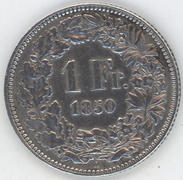 Suisse / Schweiz 1 Franc 1850 (ss) en argent 0.900 (5gr)