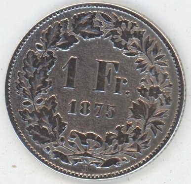 Suisse / Schweiz 1 Franc 1875 (s) en argent 0.835