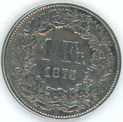 Suisse / Schweiz 1 Franc 1875 (ss) en argent 0.835