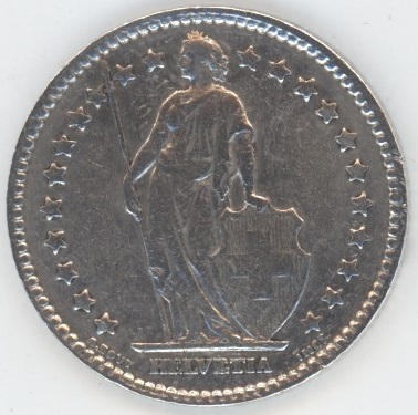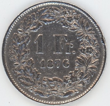 Suisse / Schweiz 1 Franc 1876 (ss) petit coup sur la tranche en argent 0.835