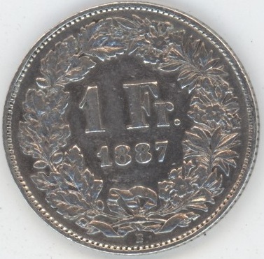 Suisse / Schweiz 1 Franc 1887 (ss+) en argent 0.835