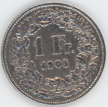 Suisse / Schweiz 1 Franc 1905 (ss) en argent 0.835