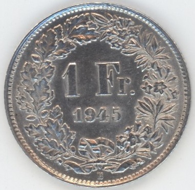 Suisse / Schweiz 1 Franc 1945 (ss) en argent 0.835 (5gr)