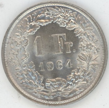 Suisse / Schweiz 1 Franc 1964 (vz-unz) en argent 0.835 (5gr)