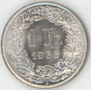 Suisse / Schweiz 1 Franc 1966 (vz) en argent 0.835 (5gr)