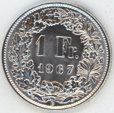 Suisse / Schweiz 1 Franc 1967 (vz-unz) en argent 0.835 (5gr)