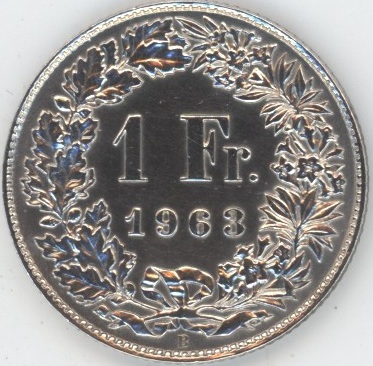Suisse / Schweiz 1 Franc 1963 (vz) en argent 0.835 (5gr)