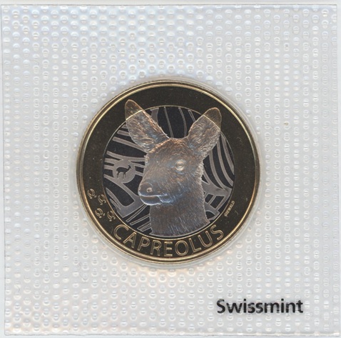 Suisse / Schweiz 10 Francs comm. 2019 Chevreuil / Reh (unz) Bimétallique