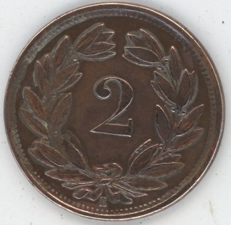 Suisse / Schweiz 2 Centimes 1866 (ss) Bronze
