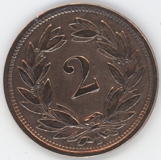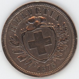Suisse / Schweiz 2 Centimes 1875 (ss) Bronze