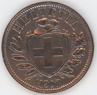 Suisse / Schweiz 2 Centimes 1907 (ss-vz) Bronze