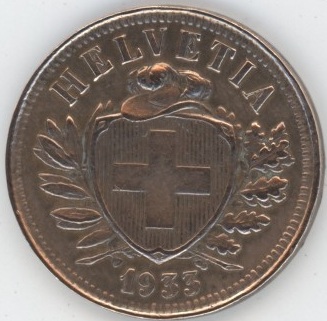 Suisse / Schweiz 2 Centimes 1933 (ss)