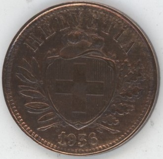 Suisse / Schweiz 2 Centimes 1936 (ss) Bronze