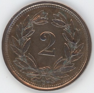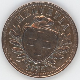 Suisse / Schweiz 2 Centimes 1938 (ss+) Bronze