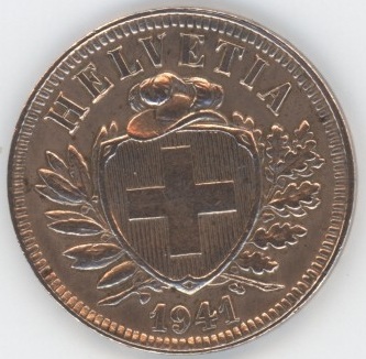 Suisse / Schweiz 2 Centimes 1941 (vz) Bronze