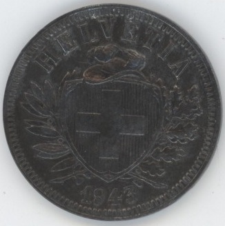 Suisse / Schweiz 2 Centimes 1943 (ss) Zn