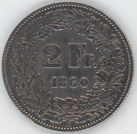 Suisse / Schweiz 2 Francs 1860 (s-ss) en argent 800