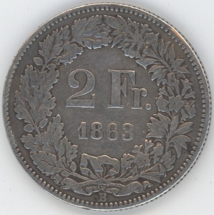 Suisse / Schweiz 2 Francs 1863 (s) en argent 0.800
