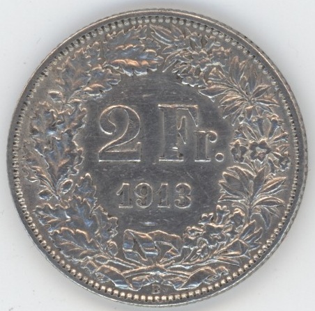 Suisse / Schweiz 2 Francs 1913 (ss) en argent 0.835 (10gr)