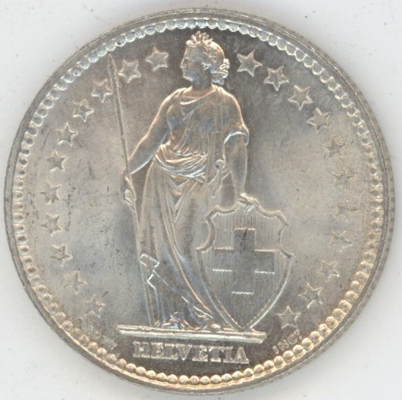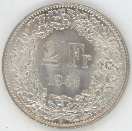 Suisse / Schweiz 2 Francs 1943 (fast unz) en argent 0.835 (10gr)