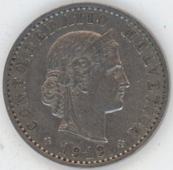 Suisse / Schweiz 20 Centimes 1919 (ss)