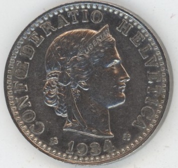 Suisse / Schweiz 20 Centimes 1934 (ss)