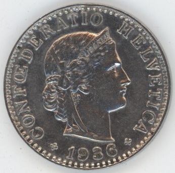Suisse / Schweiz 20 Centimes 1936 (ss-vz)