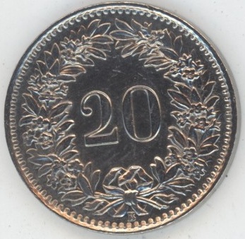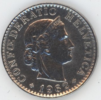 Suisse / Schweiz 20 Centimes 1962 (vz) Cu-Ni