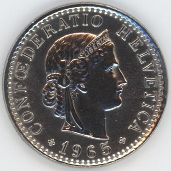 Suisse / Schweiz 20 Centimes 1965 (vz) Cu-Ni