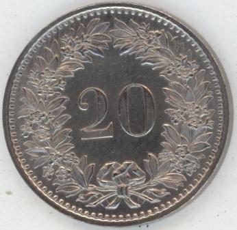 Suisse / Schweiz 20 Centimes 1974 (unz)