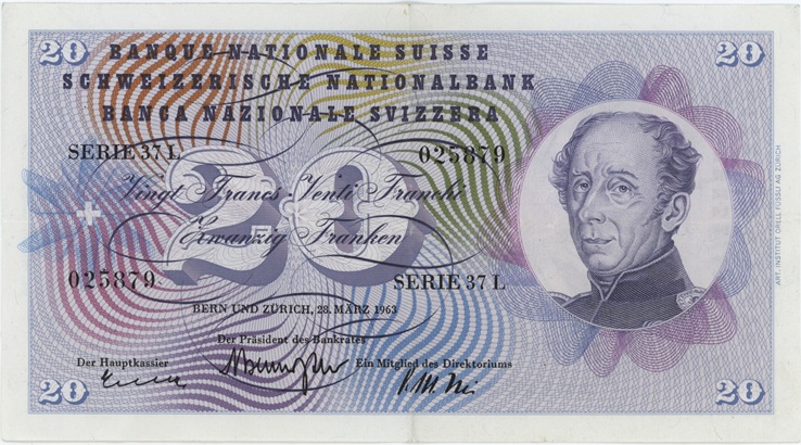 Suisse / Schweiz 20 Francs 1963 Général Dufour utilisé