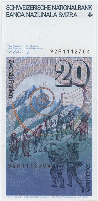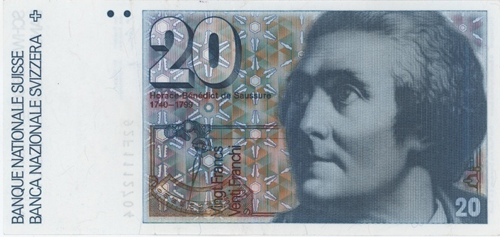 Suisse / Schweiz 20 Francs 1992 (Saussure) peu utilisé