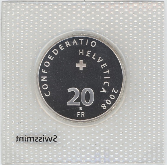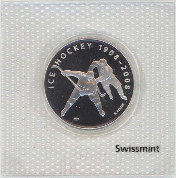 Suisse / Schweiz 20 Francs comm. 2008 (unz) 100 ans Hockey sur glace en argent 0.835 (20gr)