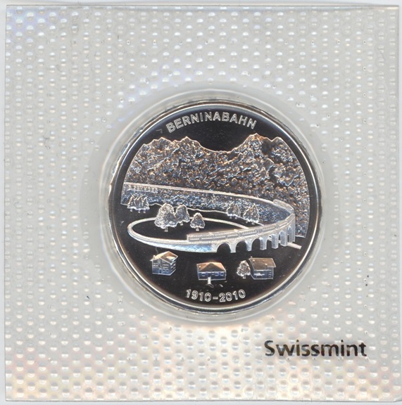 Suisse / Schweiz 20 Francs comm. 2010 (unz) Chemin de Fer de la Bernina en argent 0.835 (20gr)