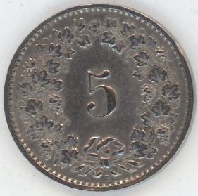 Suisse / Schweiz 5 Centimes 1953 (ss+)
