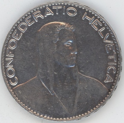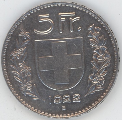 Suisse / Schweiz 5 Francs 1922 (ss) en argent 0.900 (25gr)