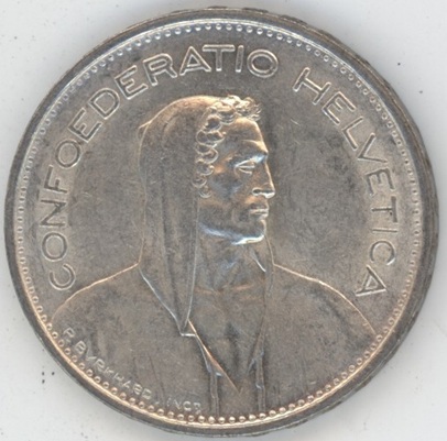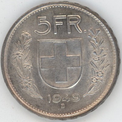 Suisse / Schweiz 5 Francs 1949 (ss+) en argent 0.835 (15gr)