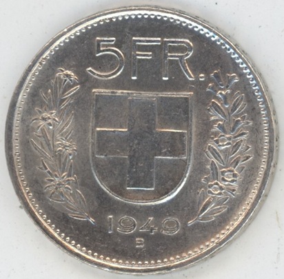 Suisse / Schweiz 5 Francs 1949 (ss-vz) en argent 0.835 (15gr)