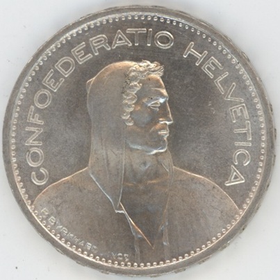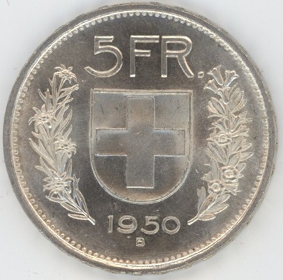 Suisse / Schweiz 5 Francs 1950 (vz+) en argent 0.835 (15gr)