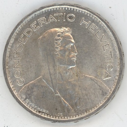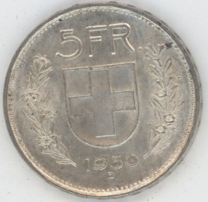 Suisse / Schweiz 5 Francs 1950 (vz) en argent 0.835 (15gr)