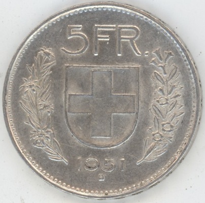 Suisse / Schweiz 5 Francs 1951 (ss+) en argent 0.835 (15gr)