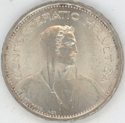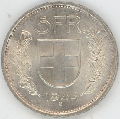 Suisse 5 Francs 1954 (vz-unz) en argent 0.835 (15gr)