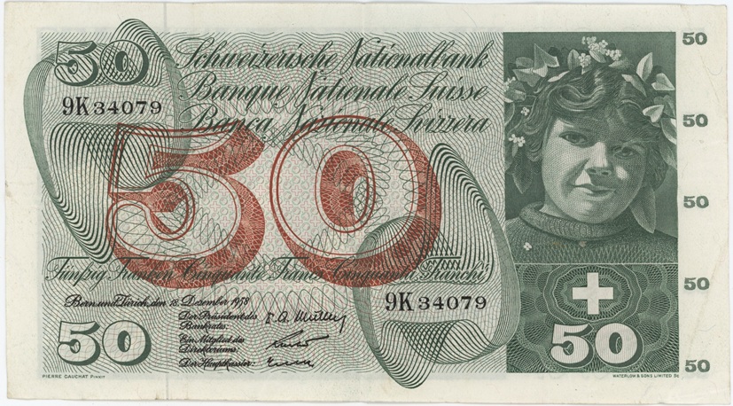 Suisse / Schweiz 50 Francs 1958 (Cueillette des Pommes) utilisé
