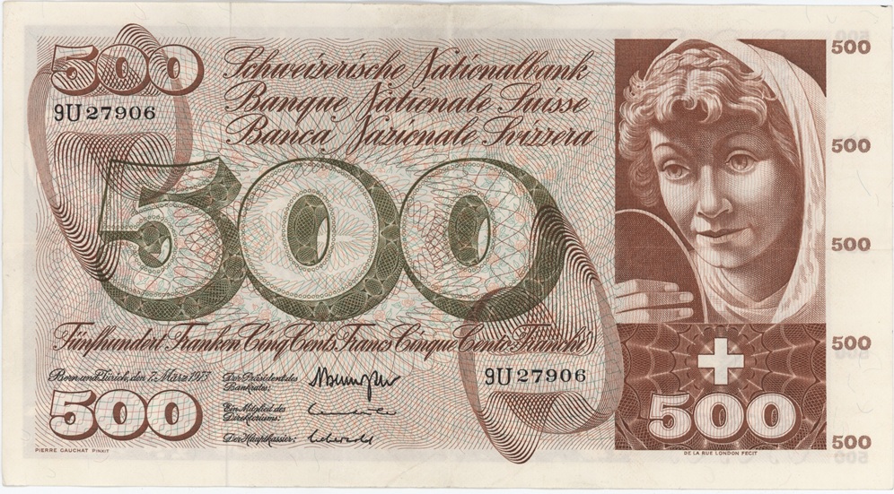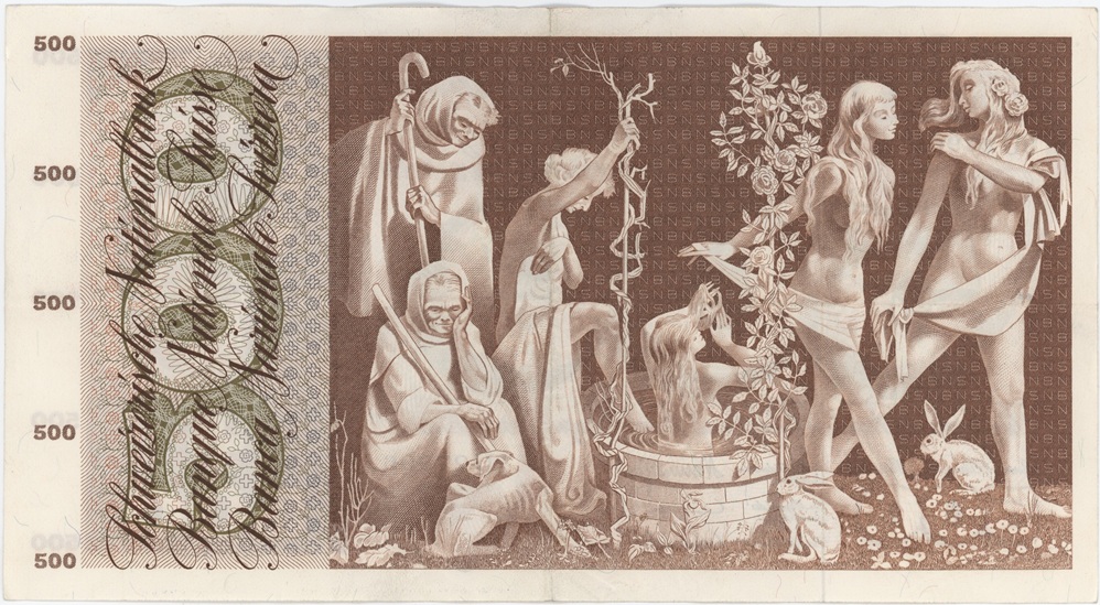 Suisse / Schweiz 500 Francs 1973 Fontaine de Jouvence utilisé
