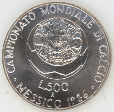 Italie 500 lires 1986 R Mondial FIFA de Mexico (vz-unz) en argent 0.835 (11gr) KM# 119