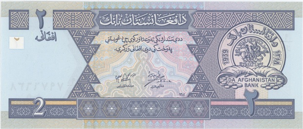 Afghanistan 2 Afghanis 2002 Neuf Information le numéro de série peut changer de celui de l’image