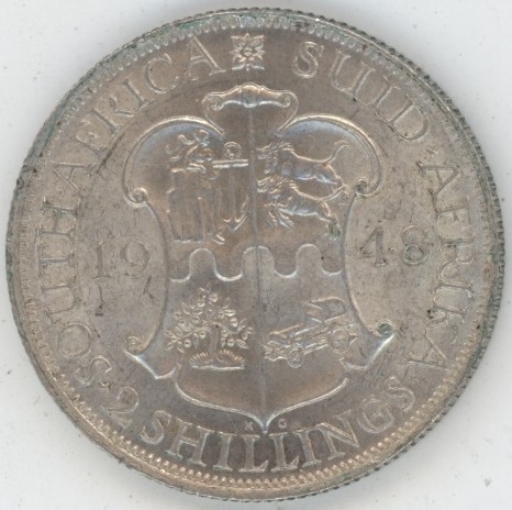 Afrique du Sud 2 Shillings 1948 George VI (vz+) en argent 0.800 (11.31gr) KM# 38.1
