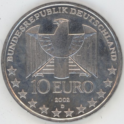 Allemagne 10 Euro 2002 D Métro en Allemagne (ss-vz) en argent 0.925 (18gr) KM# 216