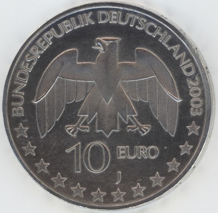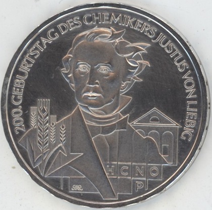 Allemagne 10 Euro 2003 J Julius Von Liebig (ss-vz) en argent 0.925 (18gr) KM# 222
