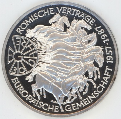 Allemagne 10 Mark 1987 G Traité de Rome (vz-unz) en argent 0.625 (15.5gr) KM# 167